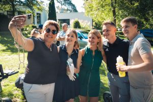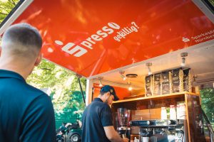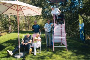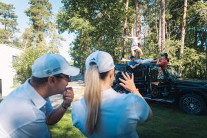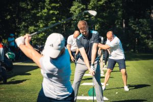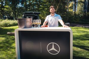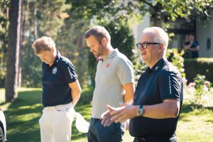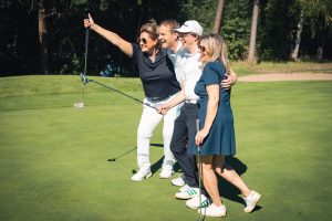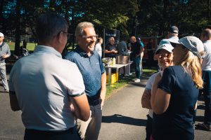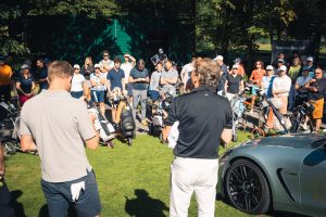 Bevor es zum Einspielen ging nutzen unsere Gäste die vielen Vorzüge, die das Sponsoren-Dorf zu bieten hatte: Mercedes-Benz Nürnberg schenkte Champagner aus, an der Café Ape der Sparkasse Nürnberg wurden zahlreiche Espressi konsumiert, naturafit gab den Golfer:innen elektrolythaltige Sportdrinks mit auf den Fairway.
