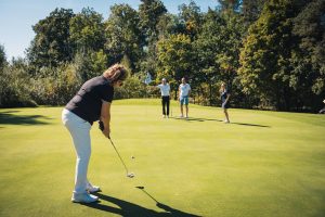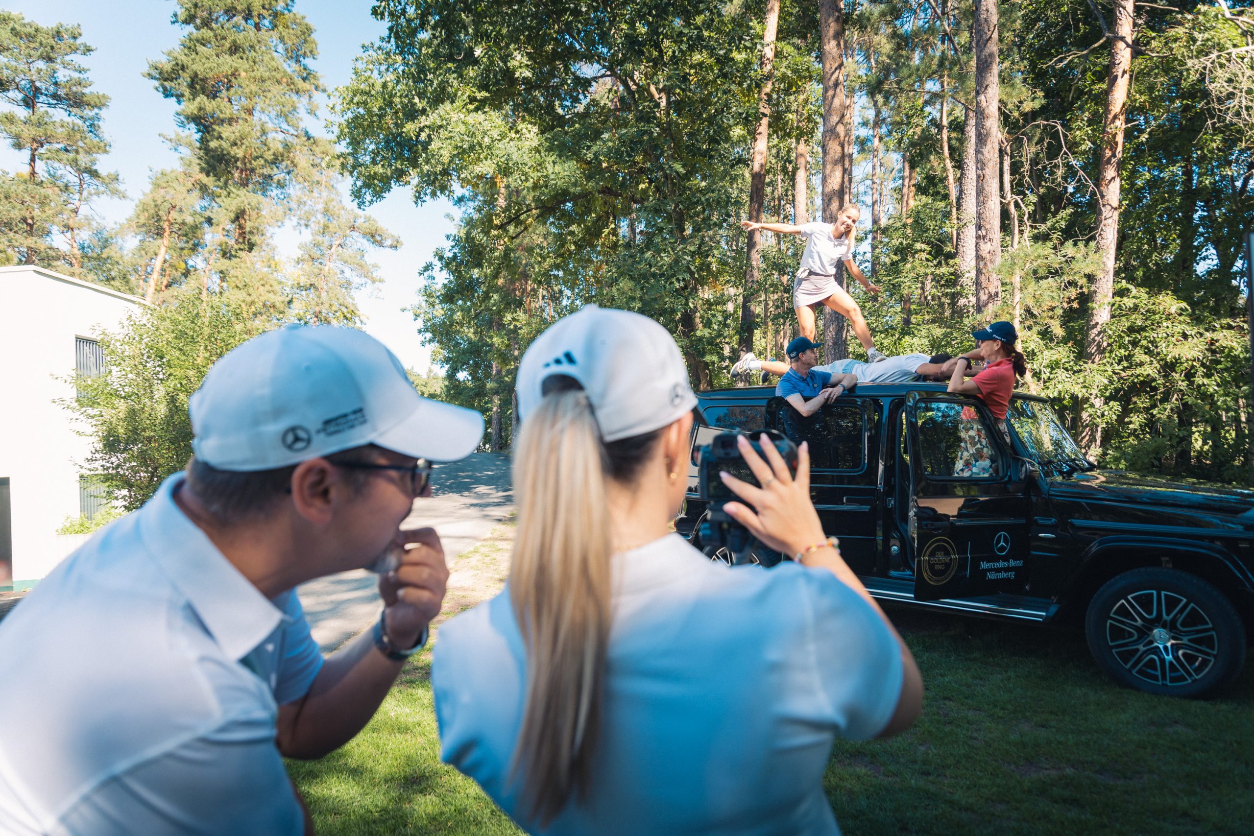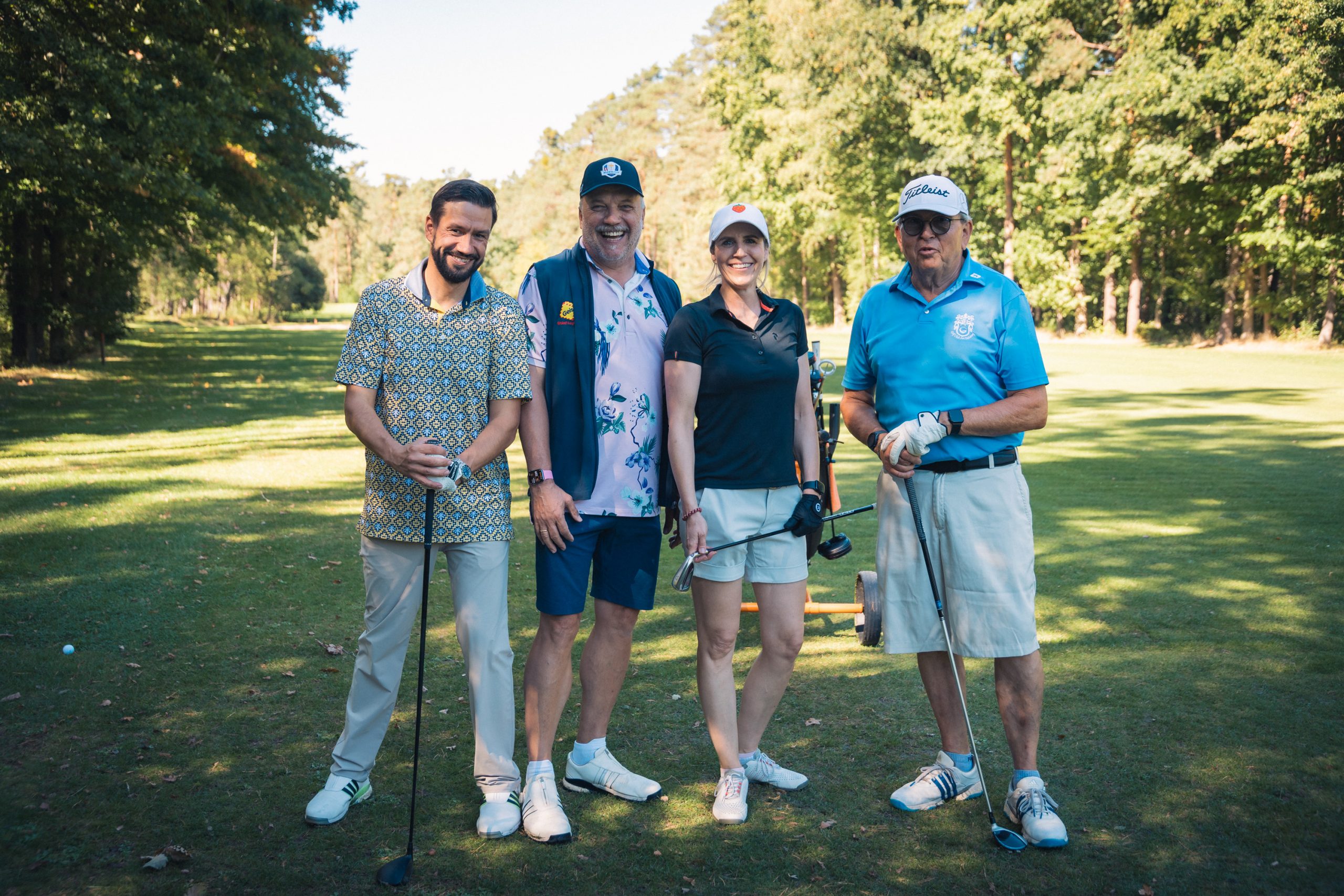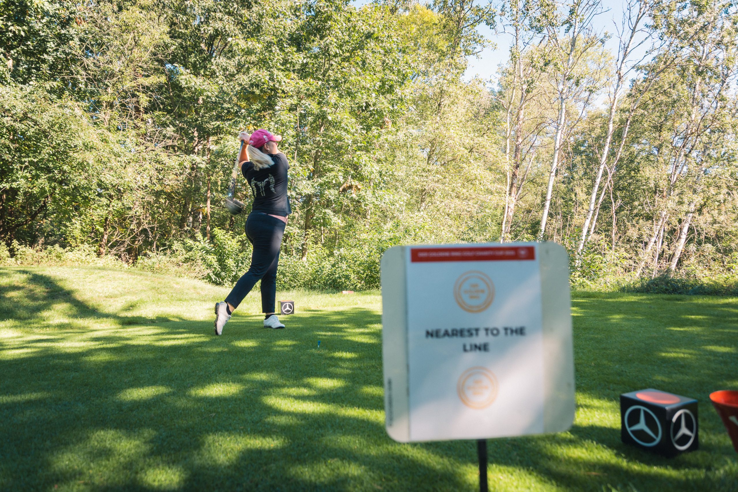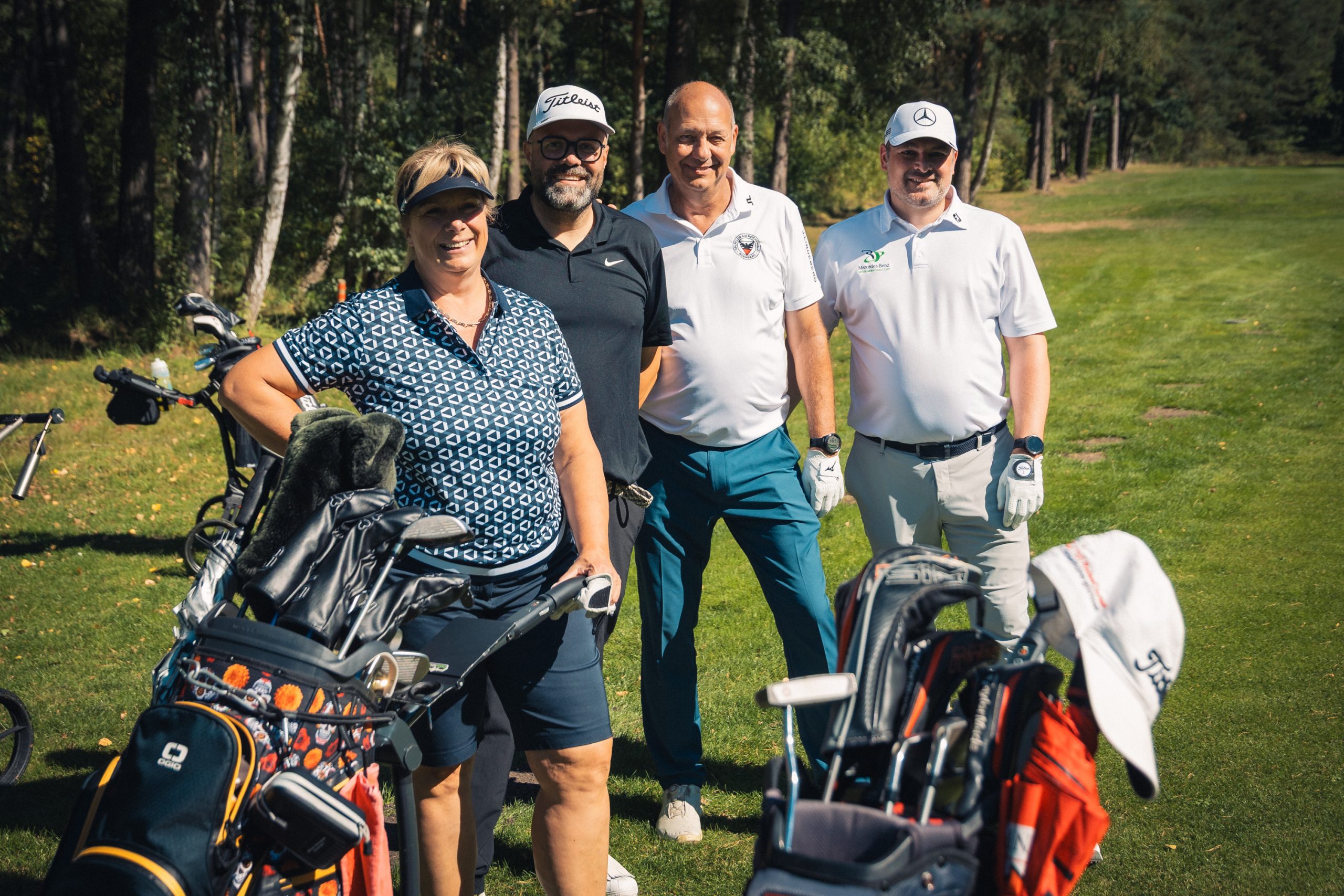 Gespielt wurde nach der offiziellen Begrüßung durch unseren Vorsitzenden Max Müller und Mercedes-Benz Nürnberg Niederlassungsleiter Andreas Rabitz in einem Florida-Scramble mit Kanonenstart. Mit 18 Löchern war es für die Spieler:innen nicht getan, sondern auch drei Sonderwertungen waren zu absolvieren. Dazu gehörten eine Fotochallenge mit der Mercedes-Benz G-Klasse, der beliebte Putting-Wettbewerb „Nearest to the Line“ und der Longest-Drive-Wettbewerb. An mehreren Löchern konnten sich die Sportler:innen an Tailgate-Buffets aus der Mercedes V-Klasse stärken. Besonders gut kam der Putter-Contest von unserem Partner Lübbering.