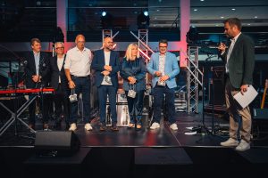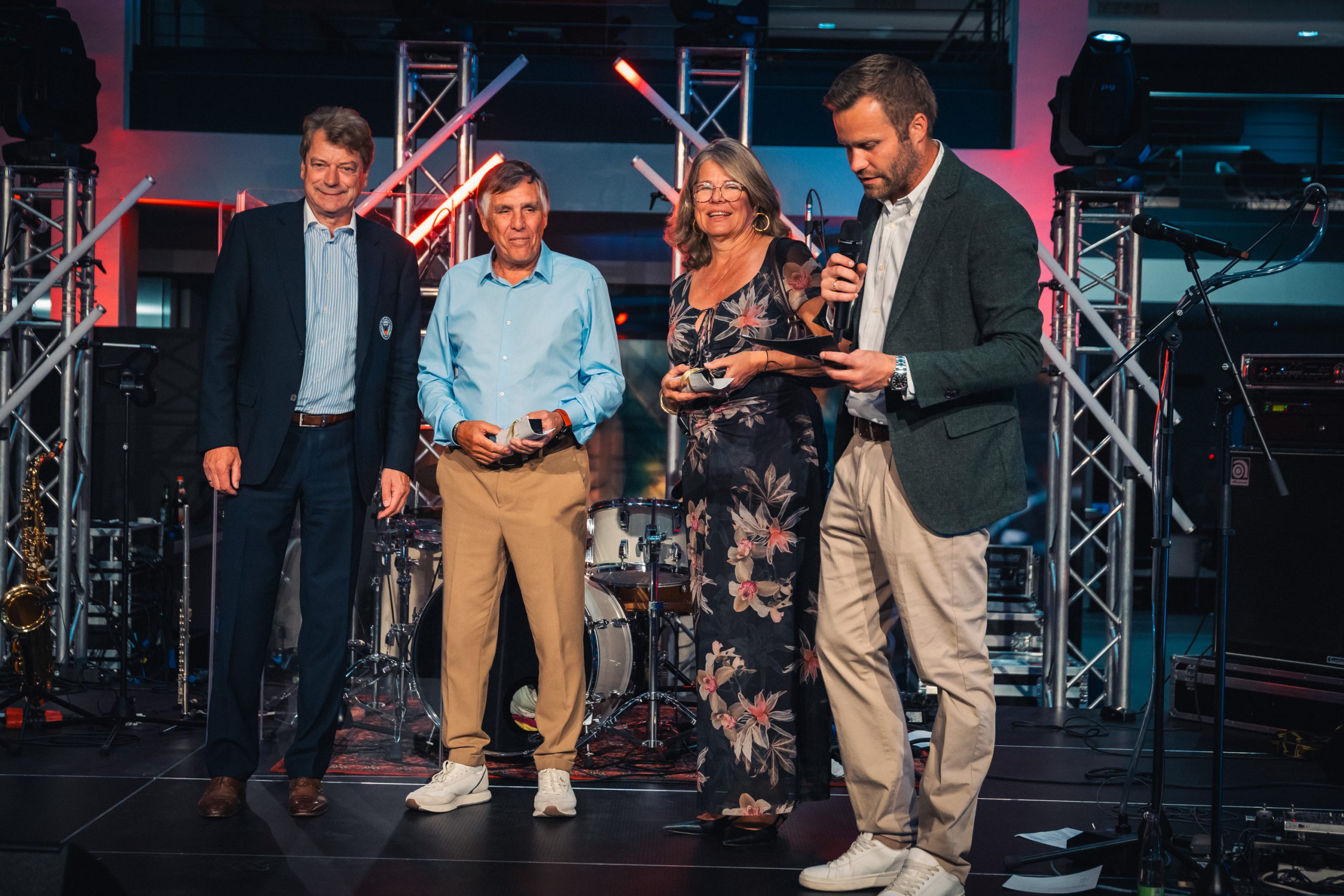 Am Ende eines aufregenden Tages auf dem Fairway sicherten Janine Fuhrer, Harald Gehr, Sven Lechner und Oliver Klughardt den Brutto-Sieg beim GOLF CHARITY CUP des GOLDENEN RING. Bei der NACHT DES SPORTS erhielten sie einzigartige Championship-Ringe von Form & Wert und Reisegolfbags von Mercedes-Benz.